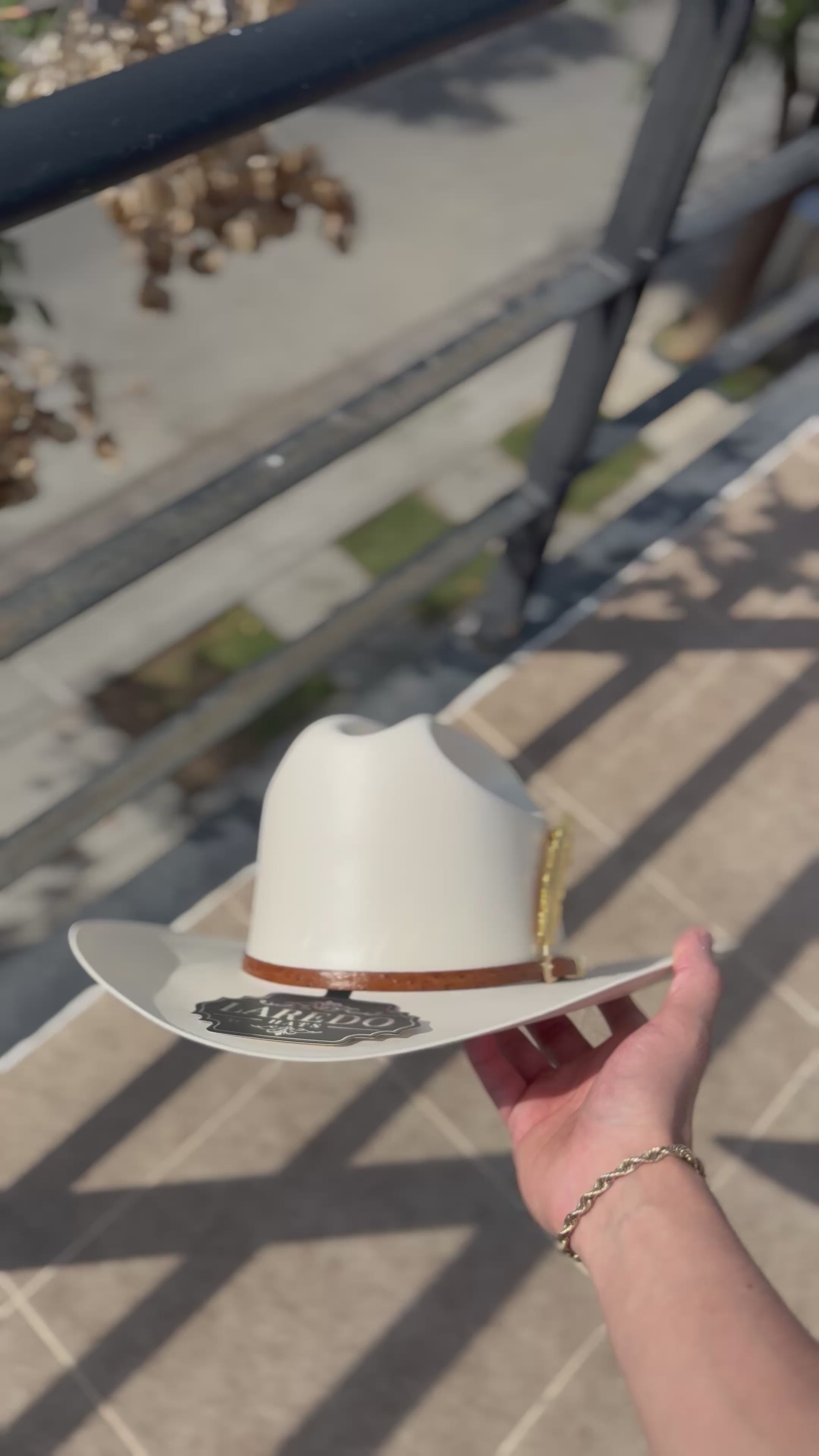 Elegancia, distinción y calidad en cada detalle. El Sombrero Laredo 5000X Gold está elaborado con materiales de primera que reflejan el verdadero lujo del estilo vaquero. Su acabado fino en tono marfil resalta con una toquilla de cuero natural y un adorno metálico dorado en forma de pluma, símbolo de exclusividad y carácter.